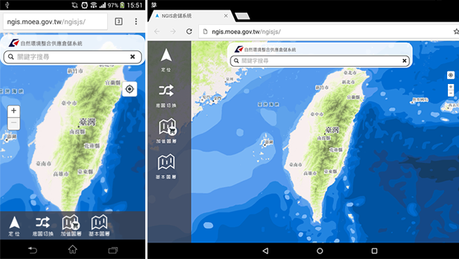 自然環境應用RWD概念設計新圖台介面,相同網站提供不同使用環境最佳的版面配置